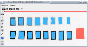 Before using this process, you have to compute the mean grey level value of each standard to associate one known amount of [14C] activity to a specific grey level value. For the time being, we propose you to manually draw rectangular or circular ROIs on each of these standards with Anatomist, as follows: