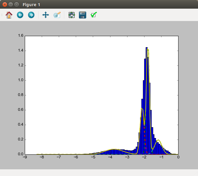 Figure 2. Fitting of the naive 4-classes GMM for a T2-weighted histogram.