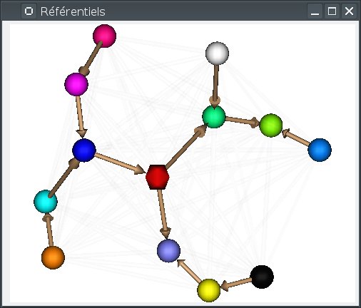 These 2 objects are in the same coordinates system, so they will be placed in the same referential, that is to say they will have the same color circle (red by default).