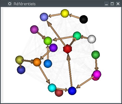 These three objects are in the same coordinates system, so they will be placed in the same referential, that is to say they will have the same color circle (red by default).