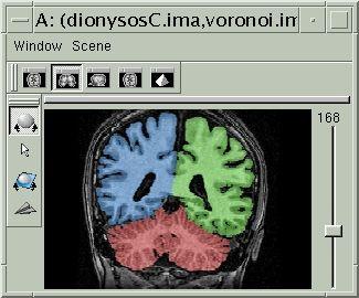 If a template of the Voronoï diagram in Talairach space is provided, it will help the procedure to select the erosion size which leads to the best seeds. Thanks to the template, moreover, a given anatomical entity can be represented by a seed made up of several connected components, which increases the process robustness. The erosion process, indeed, can split the two cerebellum hemispheres, or split the temporal lobe from the ipsilateral cortex hemisphere. In such critical cases, if only one connected component is selected as seed, the Voronoï diagram boundaries may be wrong.