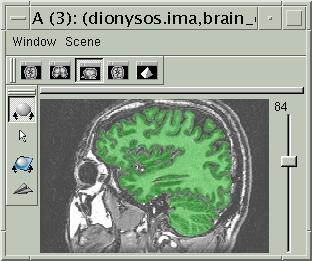 Cet outil fusionne la segmentation avec l'IRM corrigée du biais de manière à simplifier la vérification du résultat. La visualisation obtenue est la suivante: